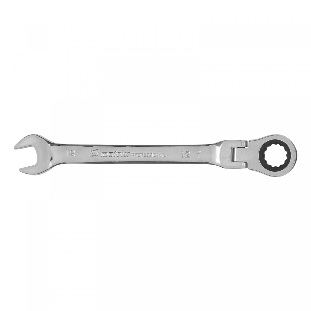 Ключ комбинированный трещоточный, 12 мм, CrV, шарнирный, зеркальный хром Matrix Professional