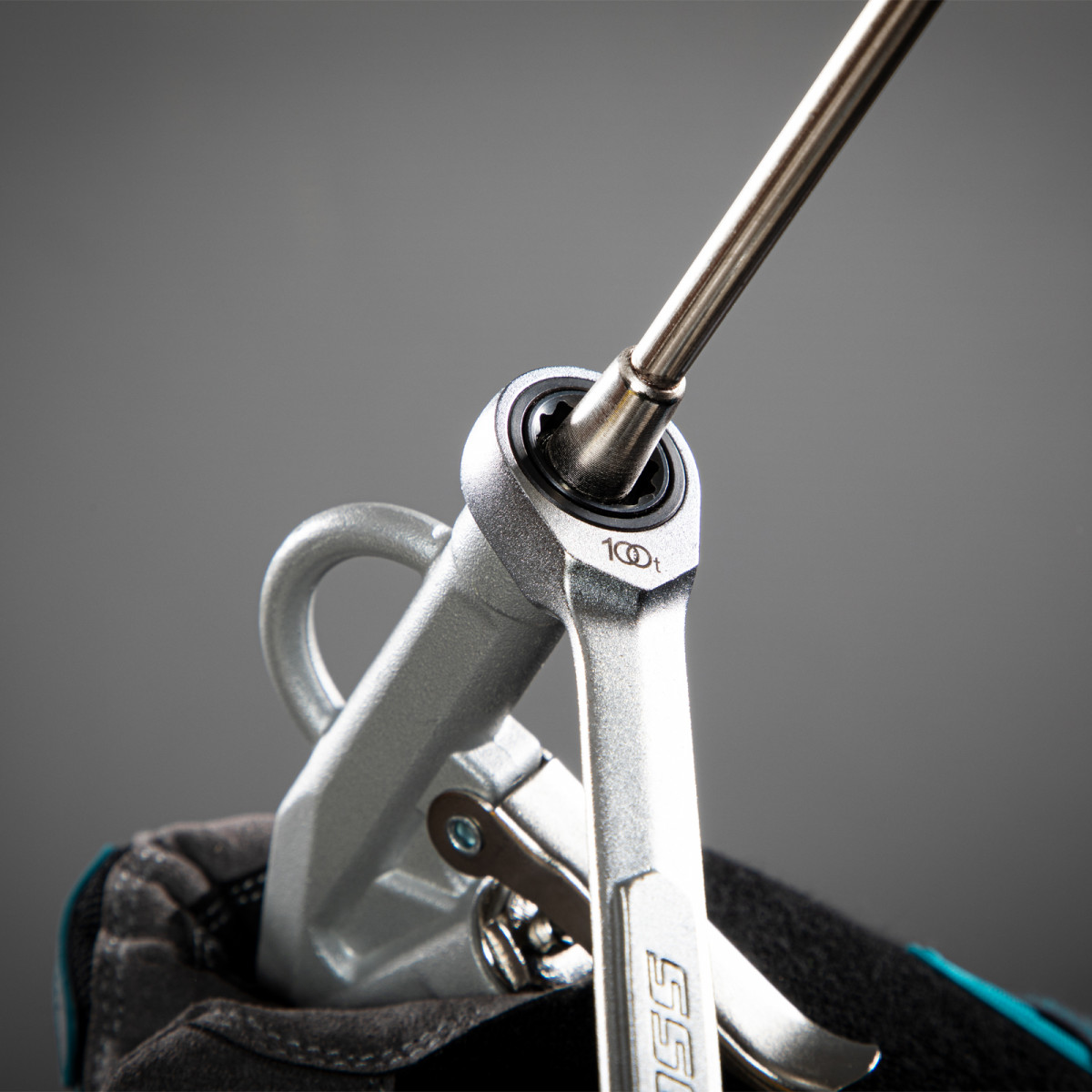 • Храповый механизм оснащен 100 зубцами, что обеспечивает плавность хода инструмента (шаг трещотки всего 3,6 градусов) и делает его удобным для работы в ограниченном пространстве.