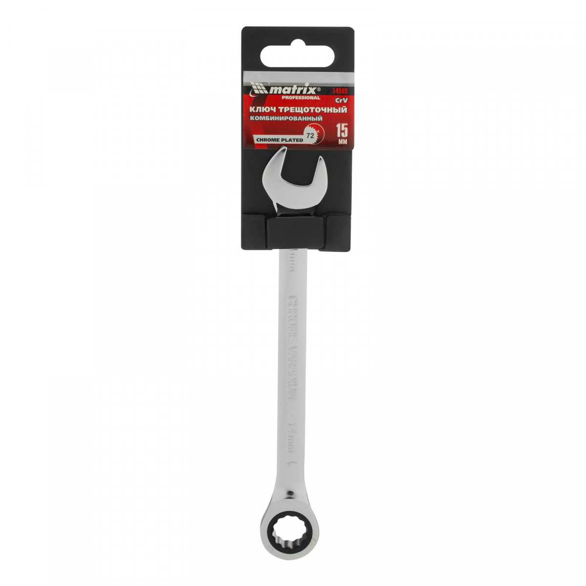 Ключ комбинированный трещоточный, 15 мм, CrV, зеркальный хром Matrix Professional