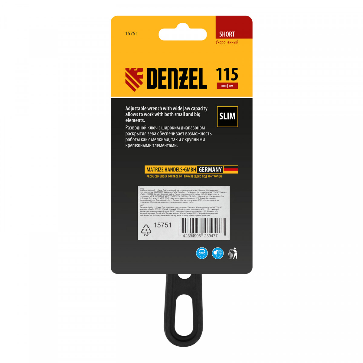 Ключ разводной 115 мм, CrV, кованый, укороченная рукоятка Denzel