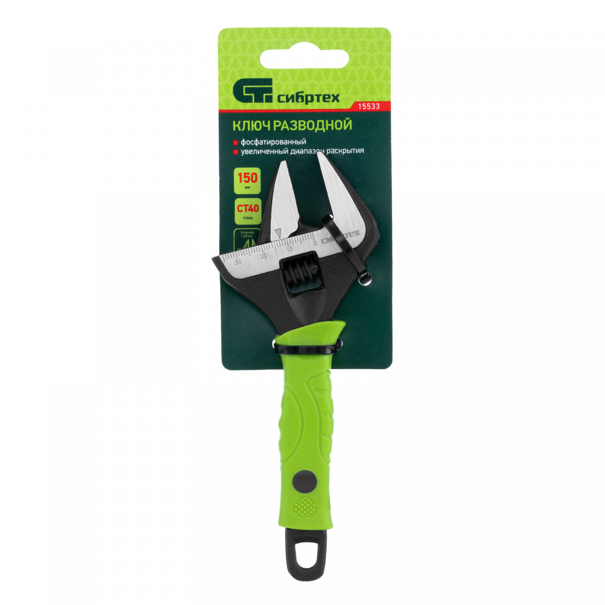 Ключ разводной, 150 мм, тонкие губки, фосфатированый Сибртех