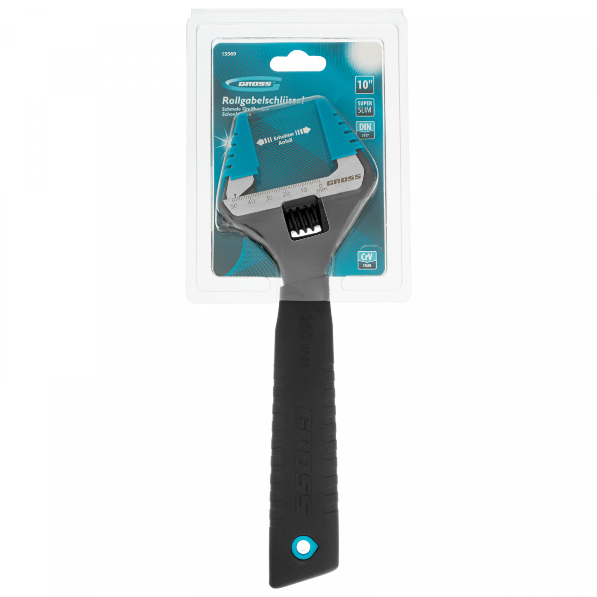 Ключ разводной, 250 мм, CrV, тонкие губки, защитные насадки Gross