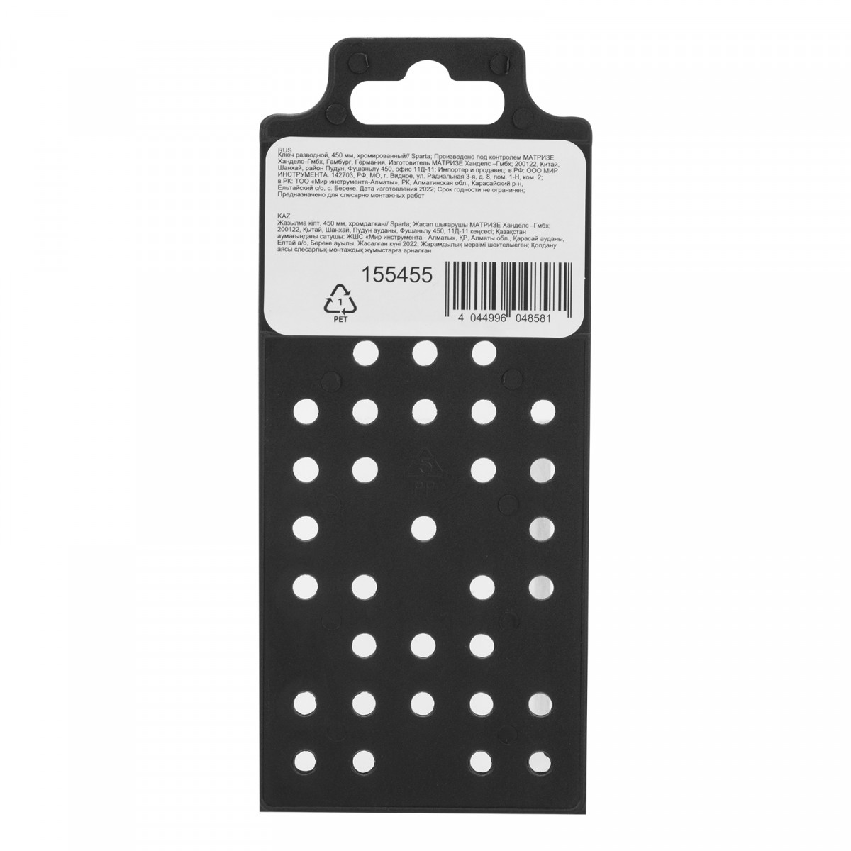 Хромированный разводной ключ Sparta 155455 длиной 450 мм — инструмент для выполнения мелких ремонтных работ. Регулировка размера зева позволяет работать с различными крепежами, в том числе нестандартных размеров. Ключ пригодится слесарям, сантехникам, автомеханикам и начинающим мастерам.