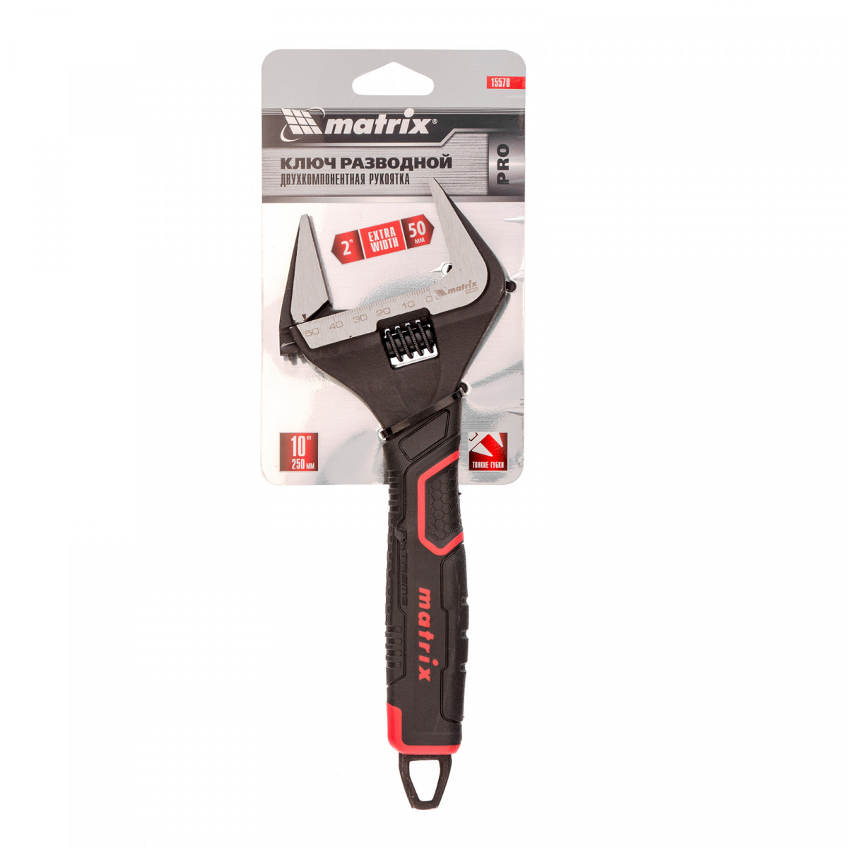 Ключ разводной, тонкие губки, фосфатированный, двухкомпонентная рукоятка, 250 мм, PRO Matrix