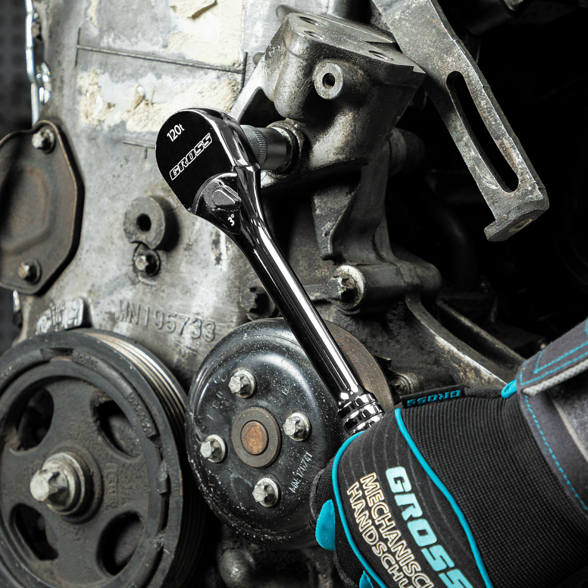 Храповый механизм с 120 зубьями обеспечивает минимальный угол поворота 3° для работы в труднодоступных местах.