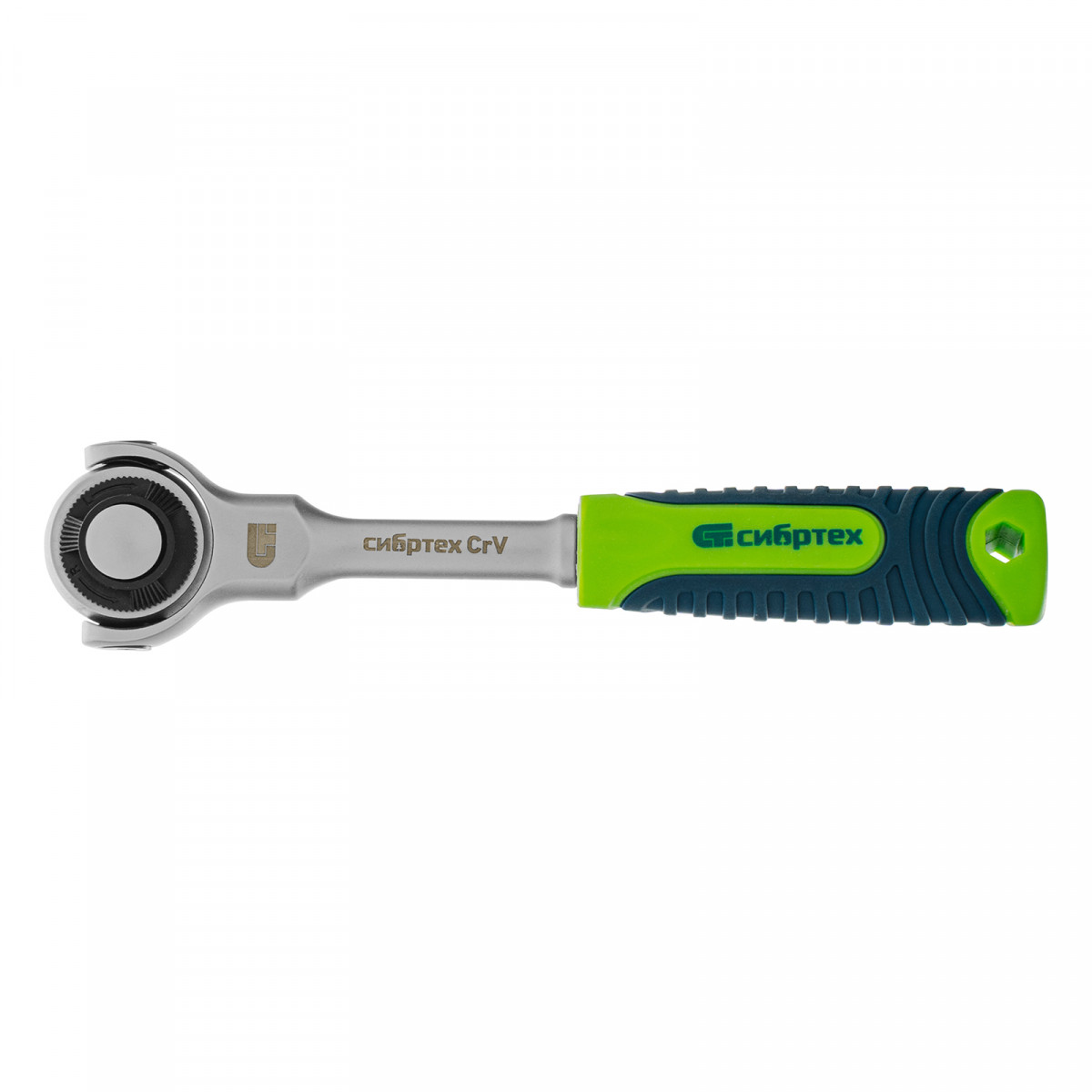 Ключ-трещотка 1/4", 72 зуба, поворотная голова, с быстрым сбросом Сибртех
