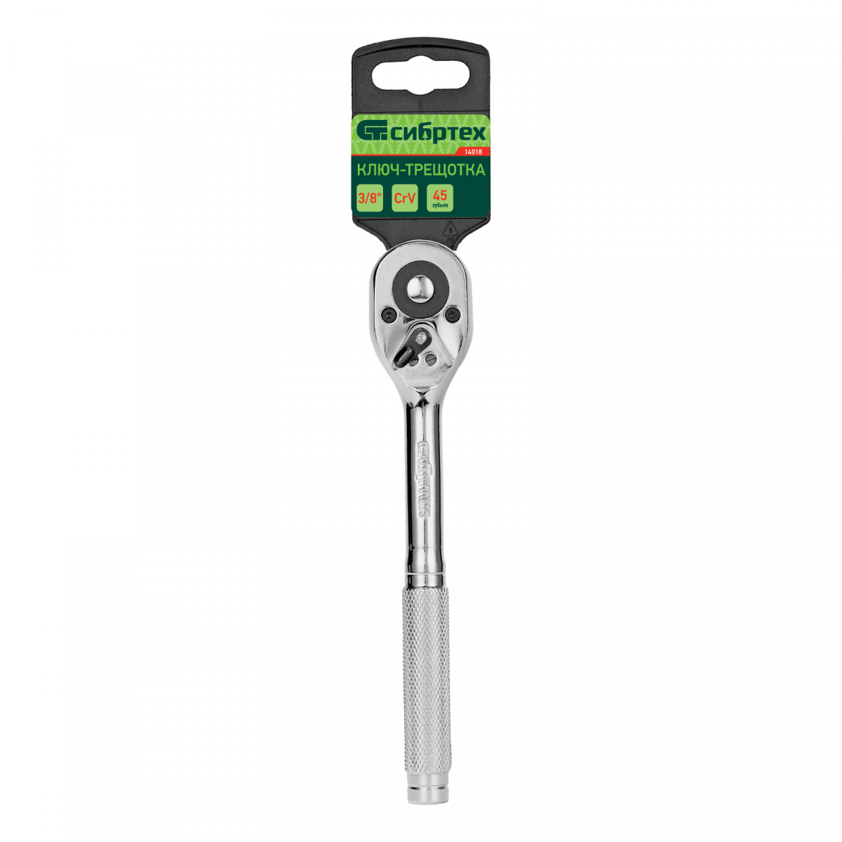 Ключ-трещотка 3/8", 45 зубьев, цельнометаллический, с быстрым сбросом, CrV, хром Сибртех