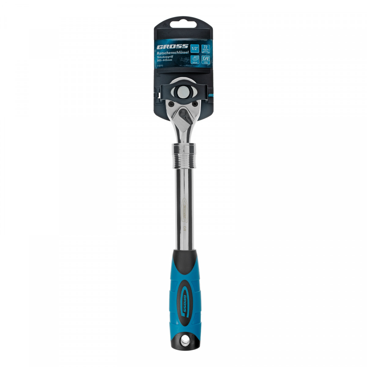 Ключ-трещотка телескопический 1/2", 305-445 мм, CrV, 72 зуба, с быстрым сбросом, хром Gross