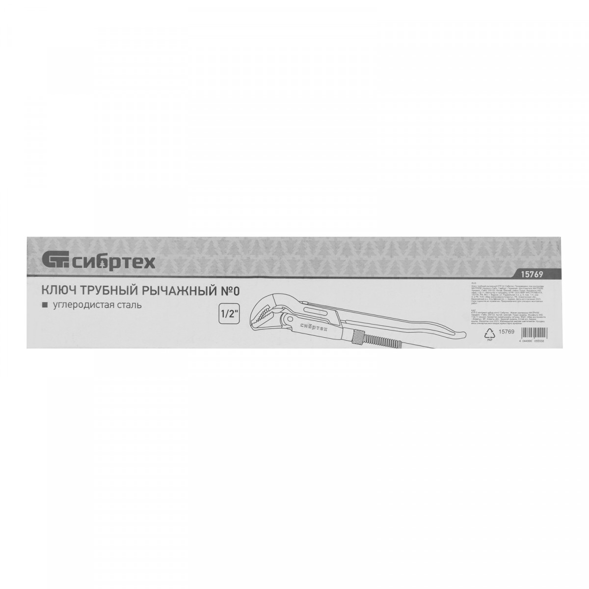 Ключ трубный рычажный КТР-0, 1/2", кованый, тип "B" Сибртех