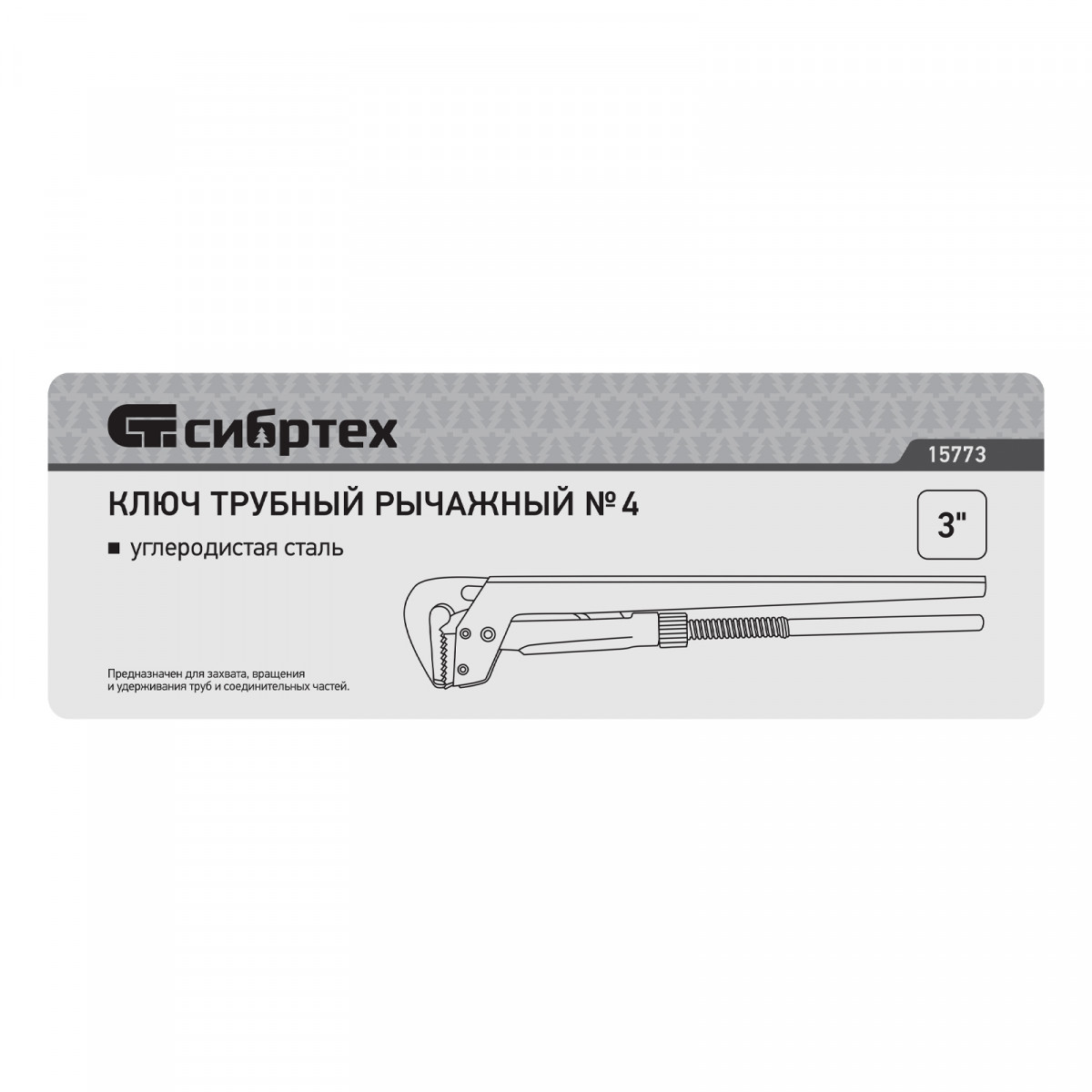 Кованый трубный рычажный ключ Сибртех №4 15773, тип «L», используется для захвата и вращения труб диаметром 3", а также других деталей со специальным профилем и без него. Рычажный механизм увеличивает рабочее усилие, снижая нагрузку на руки мастера. Инструмент рассчитан на бытовое и профессиональное применение.