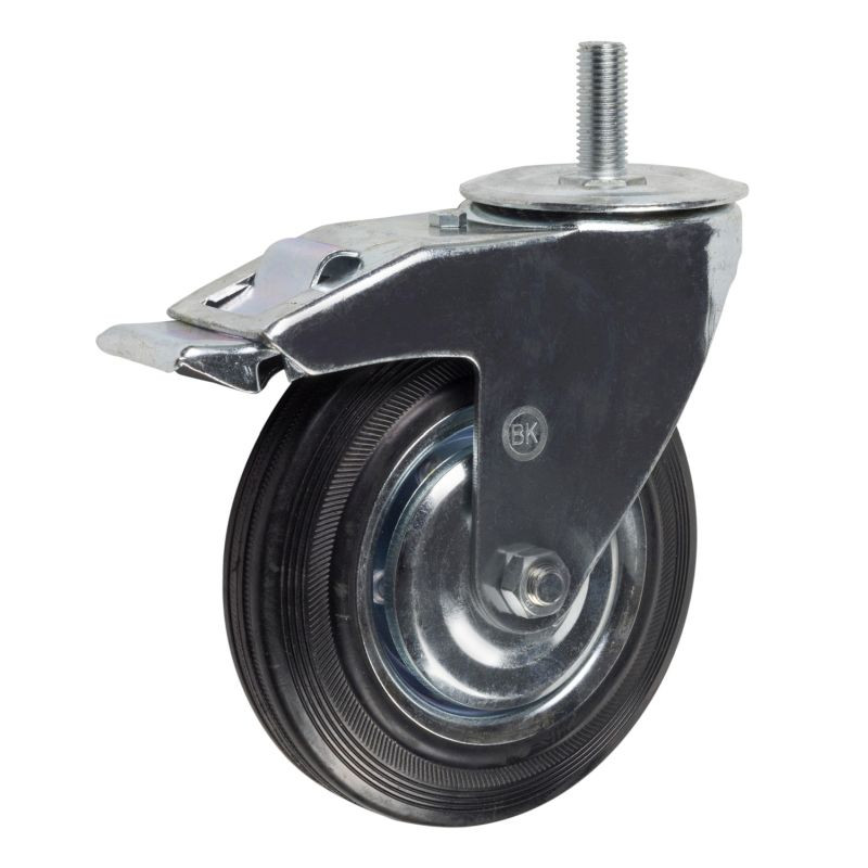 Колесная опора 125мм болт, поворотная, тормоз, черная резина, роликоподшипник
