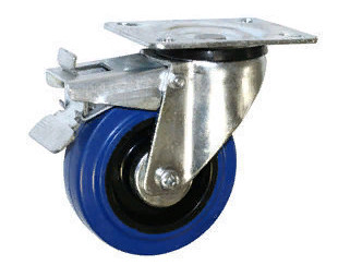Колесная опора мебельное 100мм поворотная с тормозом, платформенное крепление, синяя резина SCLb 42
