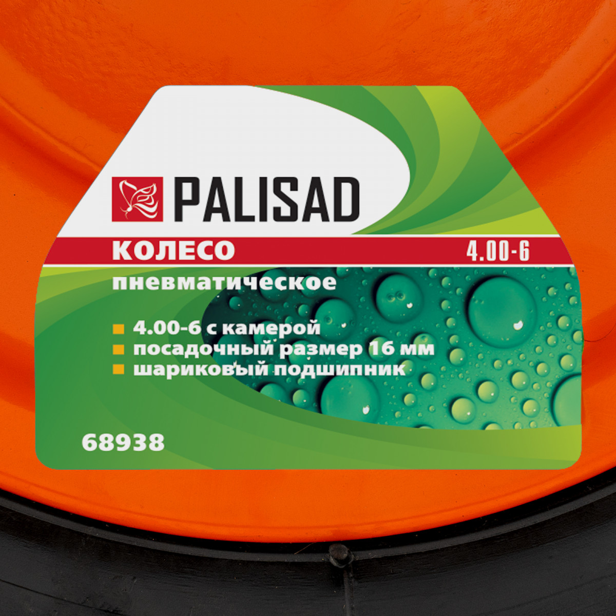 Колесо пневматическое, 4.00-6, D 325 мм, внутренний подшипник D 16 мм, длина оси 100 мм Palisad