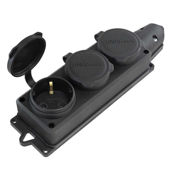 Однофазная 3-х местная колодка с заглушками, каучук UNIVersal 1323 применяется для монтажа удлинителя с проводом любой марки, сечения и длины. Для изготовления данной модели используется прочный, надежный и качественный материал. Для защиты от попадания к контактным группам пыли и влаги предусмотрены специальные крышки.