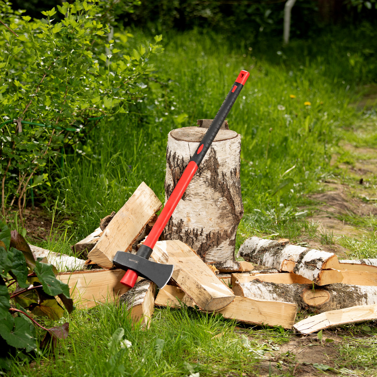 Колун Matrix 21822 с полотном массой 3600 г и фибергласовым обрезиненным топорищем длиной 900 мм рассчитан на профессиональное использование для колки крупных дров. Он оснащен небольшой наковаленкой, поэтому по нему можно бить кувалдой, что повышает точность и продуктивность работы.