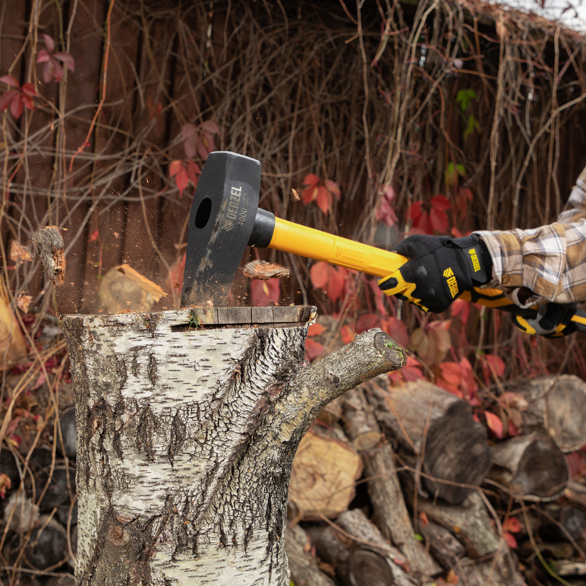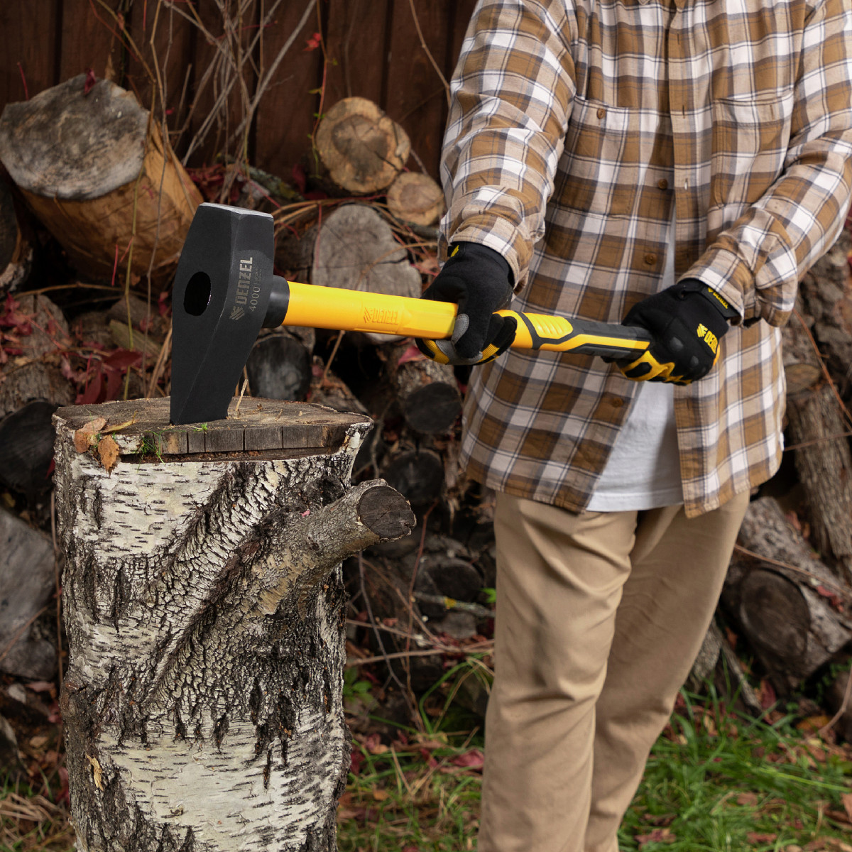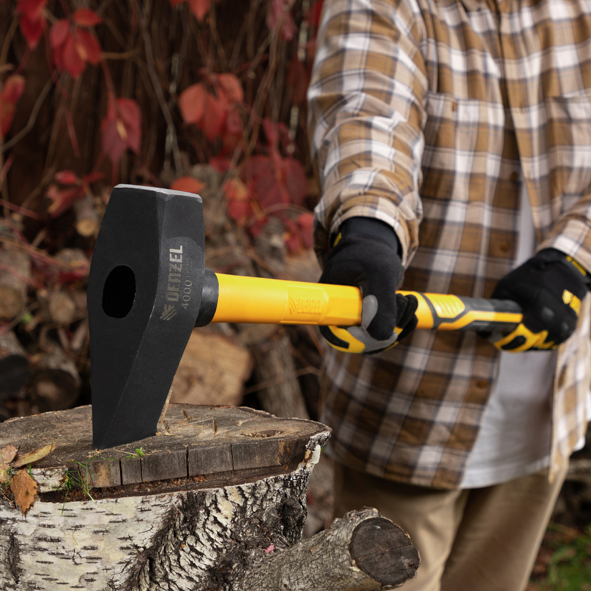 Колун-кувалда 4000 г, кованая, фибергласовая рукоятка c TPR покрытием, 880 мм Denzel