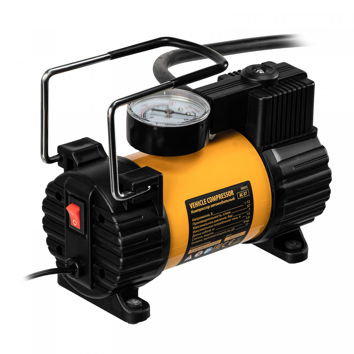 Автомобильный компрессор Denzel AC-37 58055 с автомобильным предохранителем работает от бортовой сети 12 В, обеспечивает давление 7 атмосфер и производительность 37 л/мин. Служит для накачивания шин, резиновых матрацев, надувных лодок и других изделий — для этого предусмотрены различные насадки. Компрессор пригодится в гараже, будет полезен в дальней поездке, а также во время отдыха на природе.