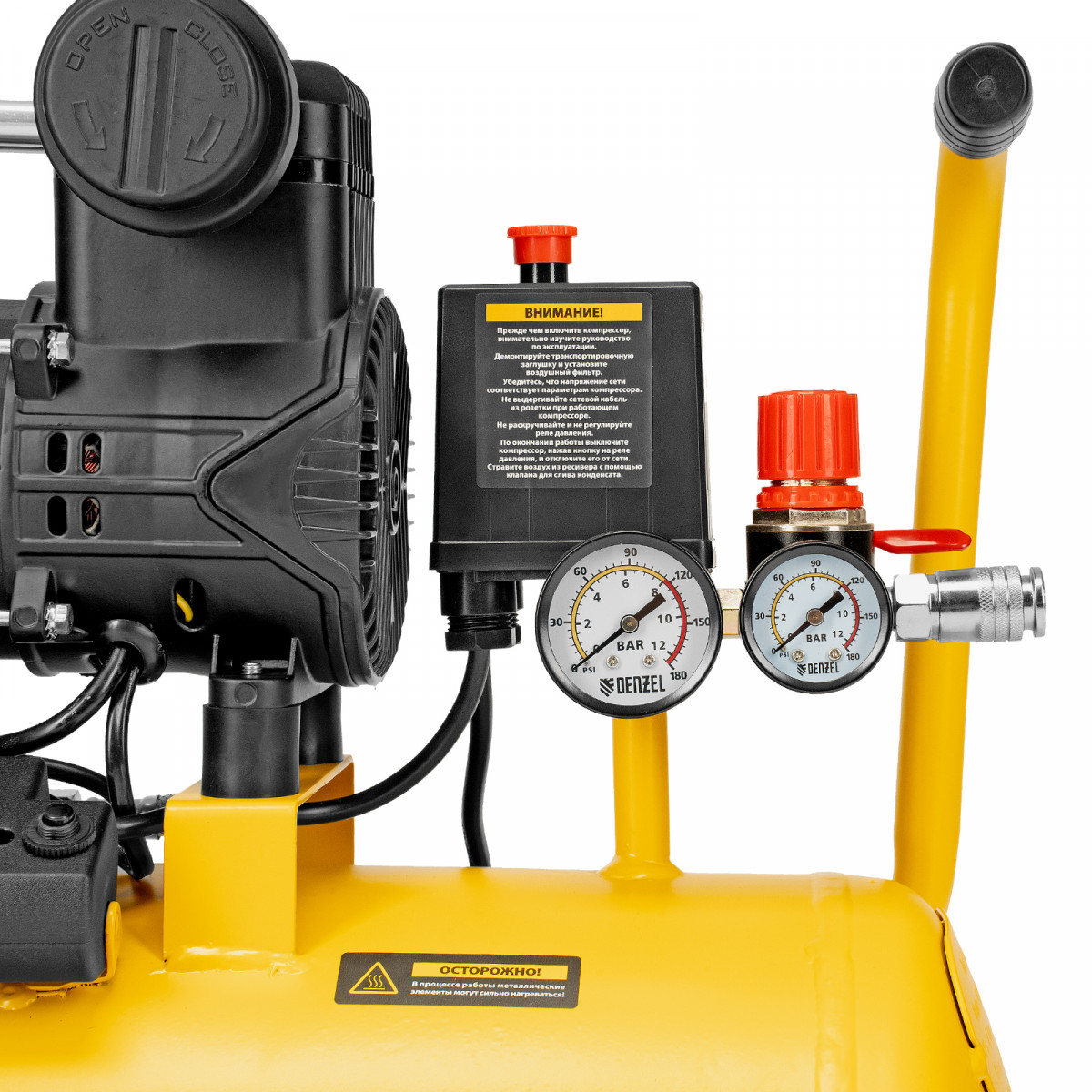 Компрессор безмасл. малошумный DLP-950/24, 950Вт,24 л, 2850 об/мин, 170 л/мин Denzel