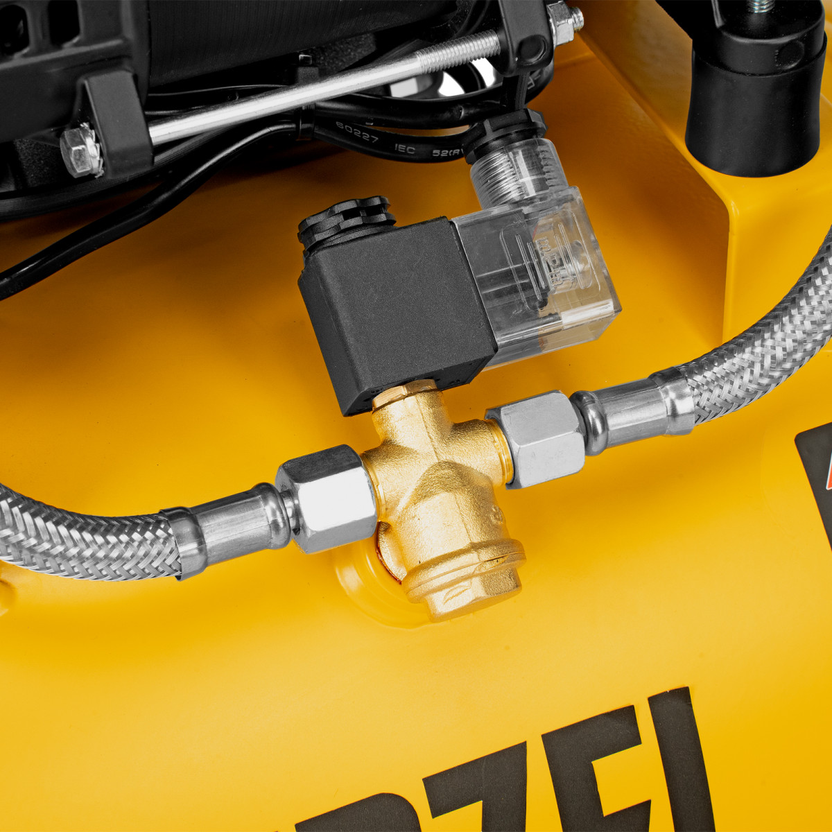• Удобный контроль работы — компрессор оснащен 2 манометрами для отслеживания давления в ресивере и пневмолинии