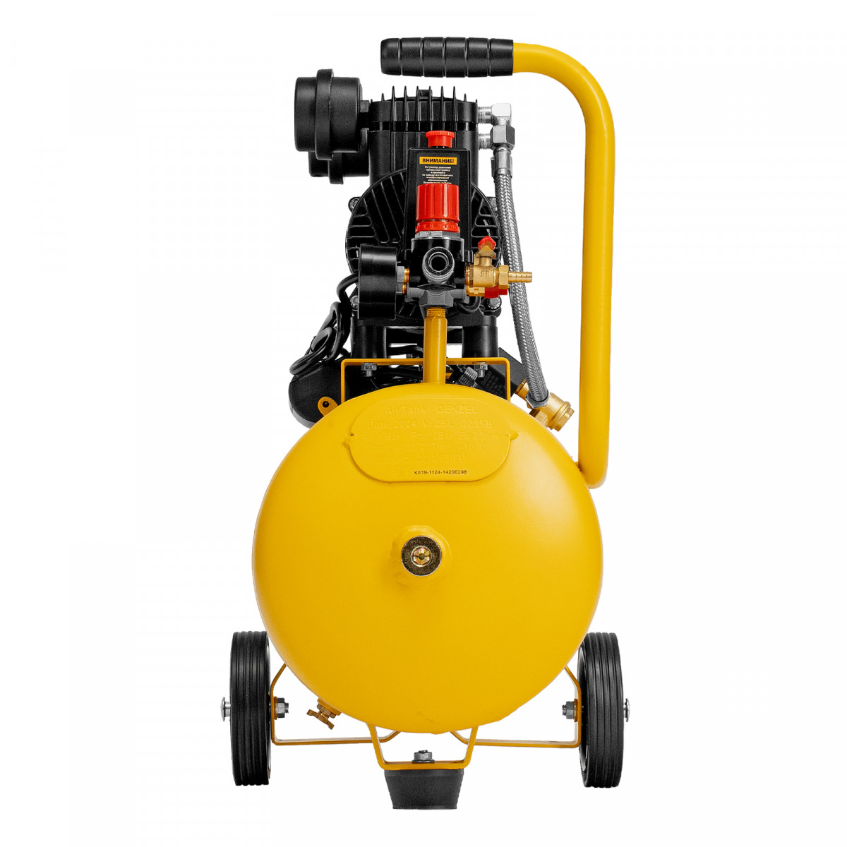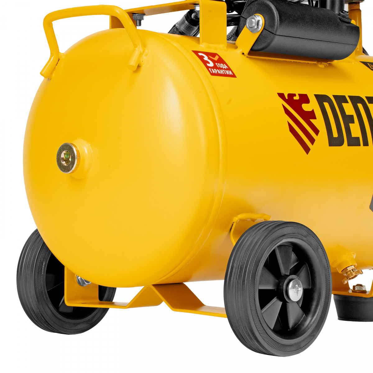 • Мобильность — 2 колеса и транспортировочная рукоятка упрощают перемещение компрессора по рабочей зоне.