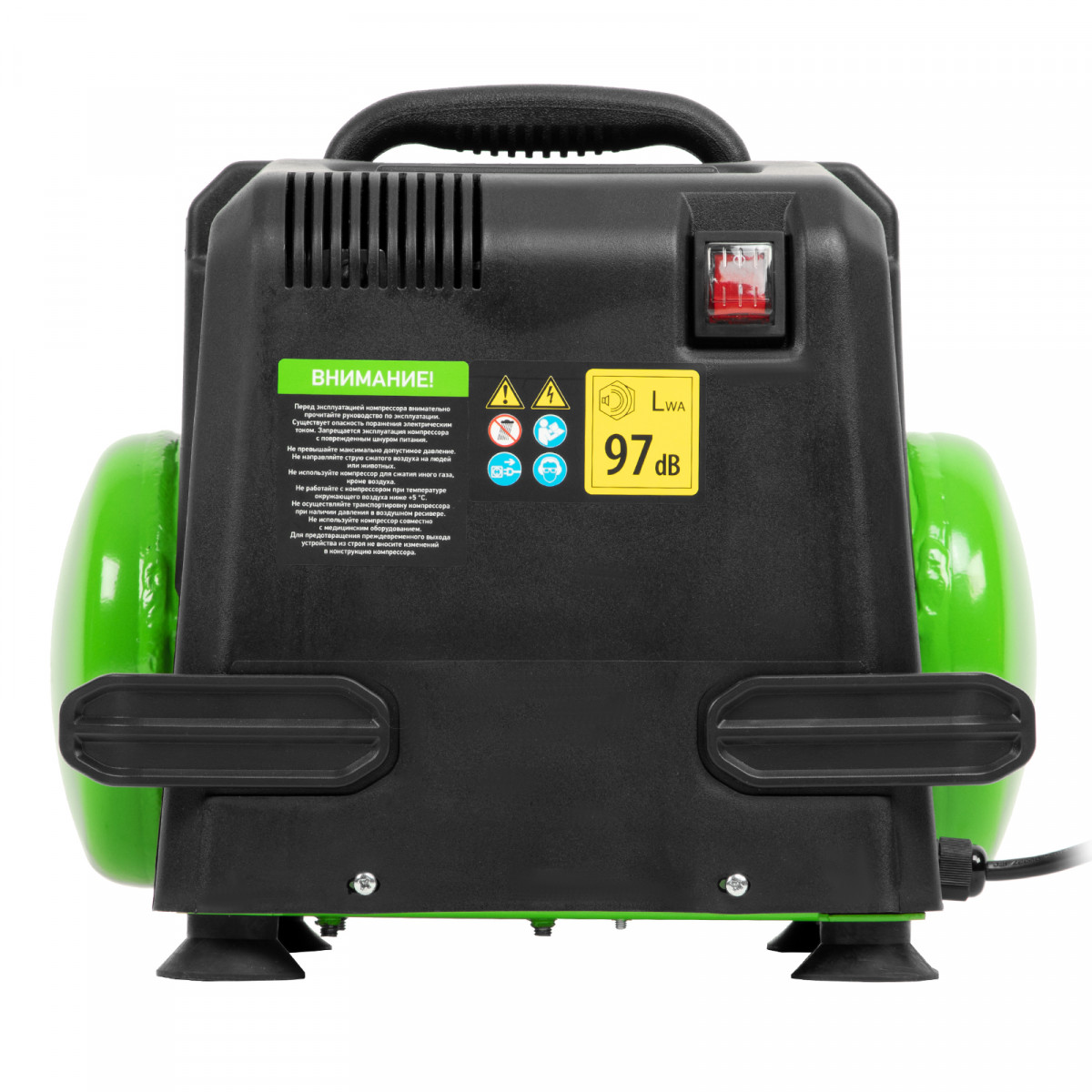 • Продуманная конструкция — виброгасящие опоры обеспечивают устойчивость компрессора во время работы.
