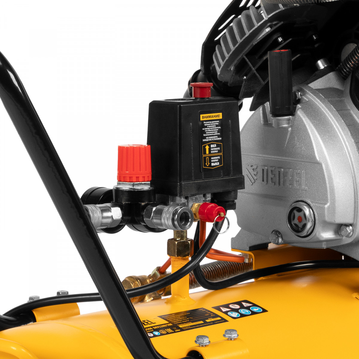 - Безопасная эксплуатация — компрессор оснащен клапаном сброса избыточного давления.