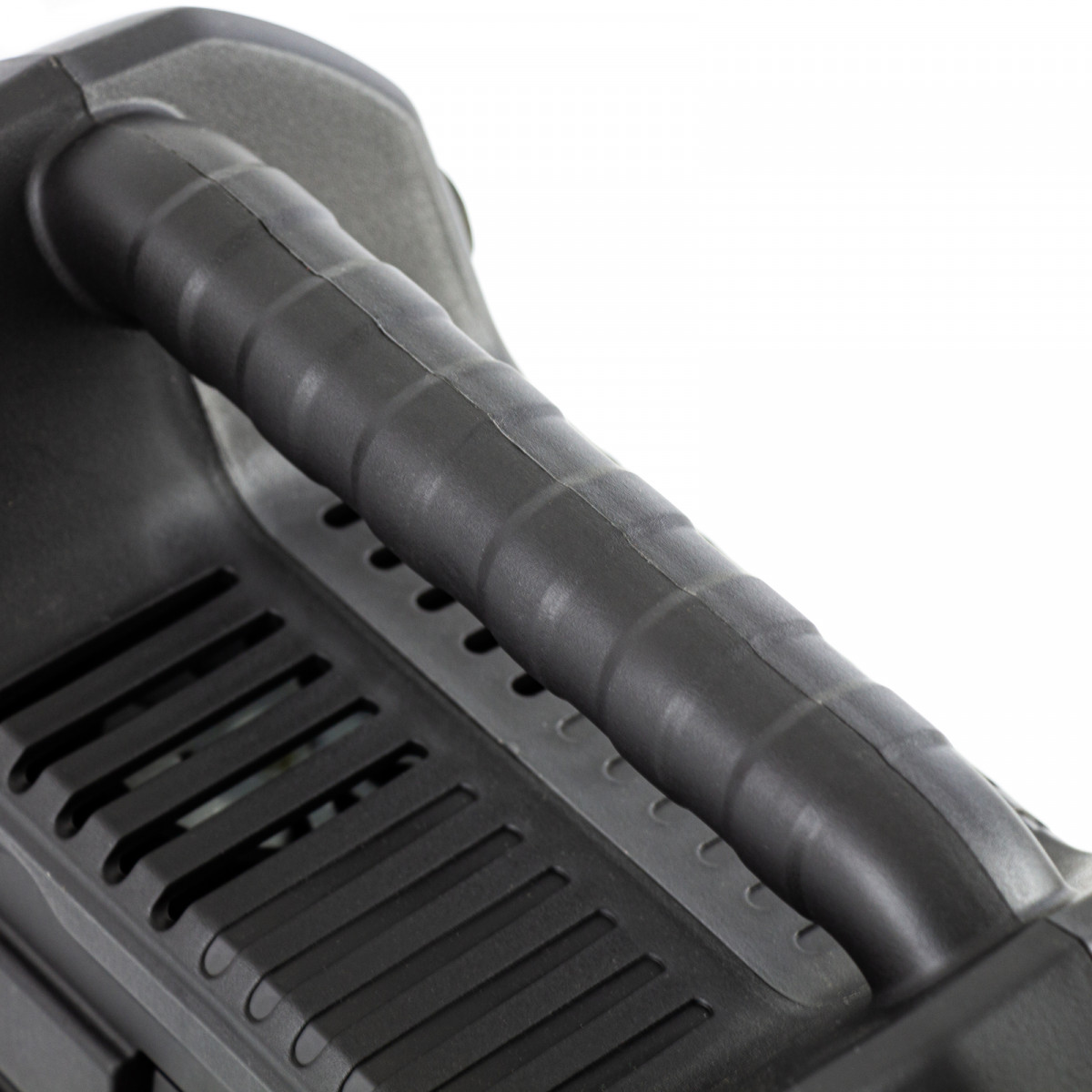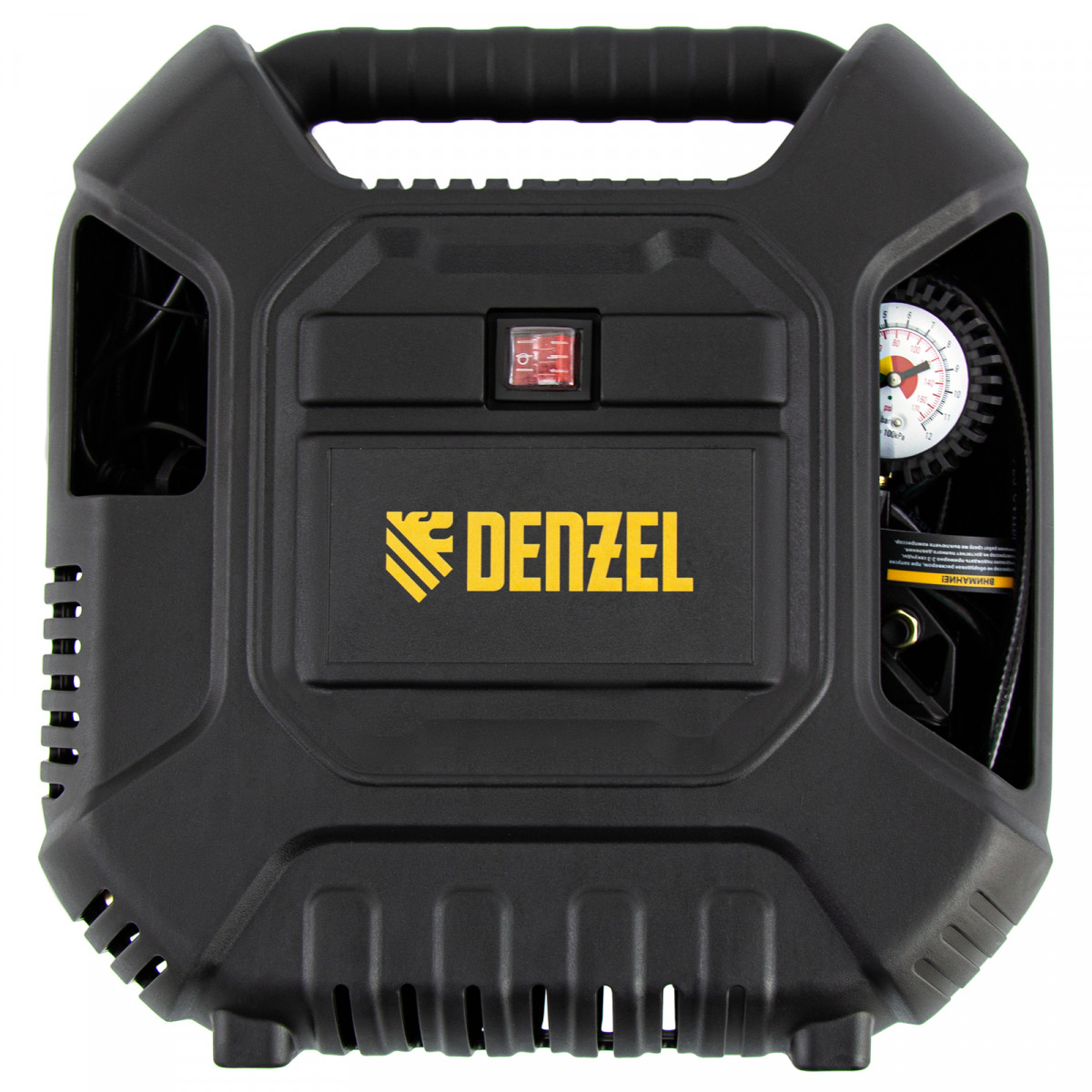 - Легкость перемещения — ребристая транспортировочная ручка делает переноску кейса-компрессора простой и удобной.