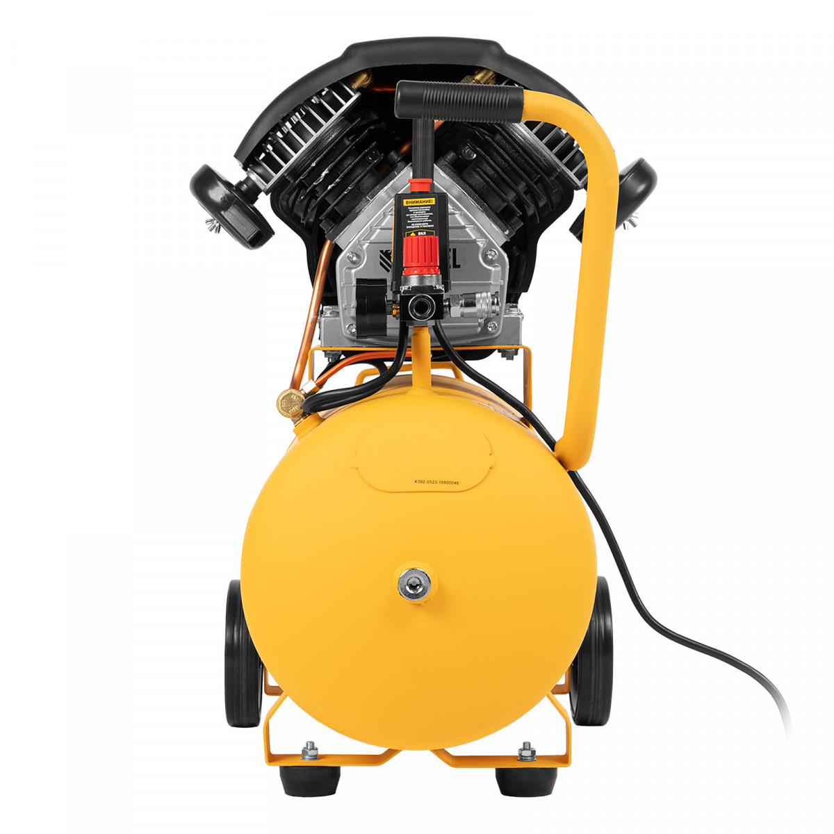 колеса и амортизирующие опоры - для снижения вибрации_мощный мотор и двухцилиндровая конструкция - высокая производительность_регулятор давления и 2 манометра для контроля давления и расхода воздуха_ресивер 50 литров - работа с пневмоинструментом со средним уровнем потребления воздуха_защита от перегрева обмоток мотора_защита от перегрузки