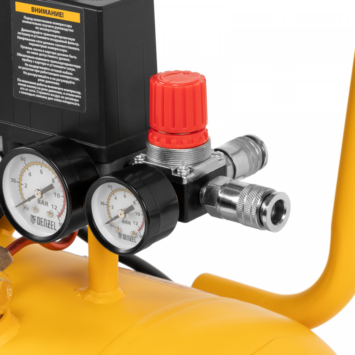 Воздушный компрессор с прямым приводом Denzel DC1500/50 58161 мощностью 1,5 кВт и производительностью 220 л/мин, с объемом ресивера 50 л, используется для подачи сжатого воздуха к пневмоинструменту, например, пневмогайковерту, пневмодрели, пневмостеплеру, пневмозубилу. Благодаря использованию смазочного масла, которое снижает износ деталей, компрессор выдерживает длительную работу и подходит для профессионального применения в автомастерской, гараже или на строительной площадке.