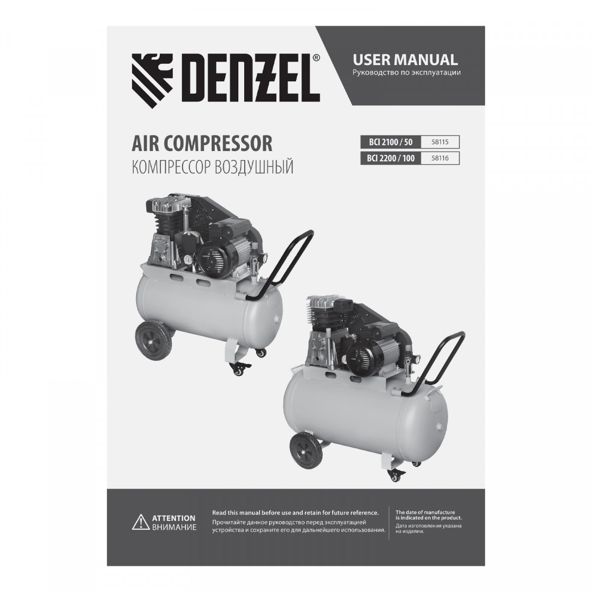Компрессор воздушный рем. привод BCI 2200/100, 2,2 кВт, 100 литров, 420 л/мин Denzel