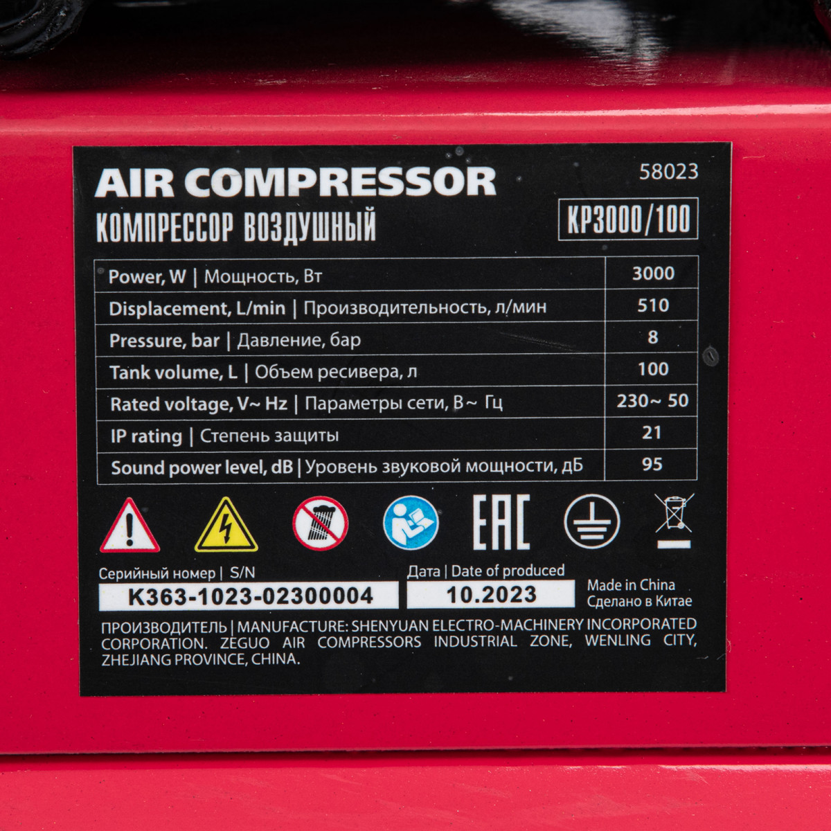 • Готовность к работе — в комплект поставки входит сапун и компрессорное минеральное масло марки L-DAB 68 (250 мл).