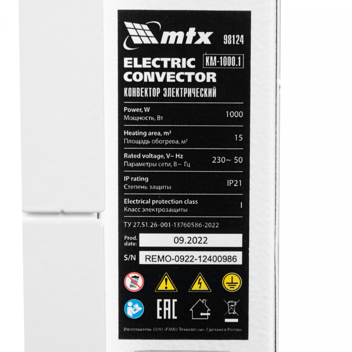 Конвектор электрический КМ-1000.1, 230 В, 1000 Вт, X-образный нагреватель, колеса, термостат MTX