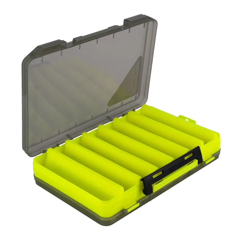Полупрозрачная крышка с легкостью позволяет увидеть нужные снасти или приманки.