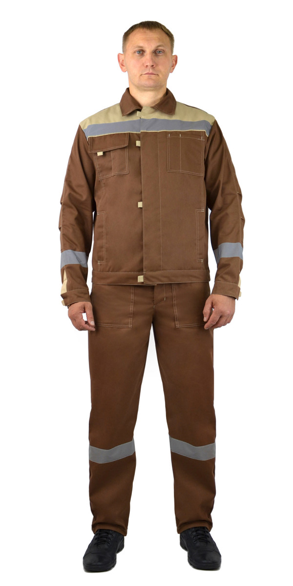 Костюм летний Фаворит, куртка, П/К т.коричневый с бежевым и СОП, тк. Твилл Формекс