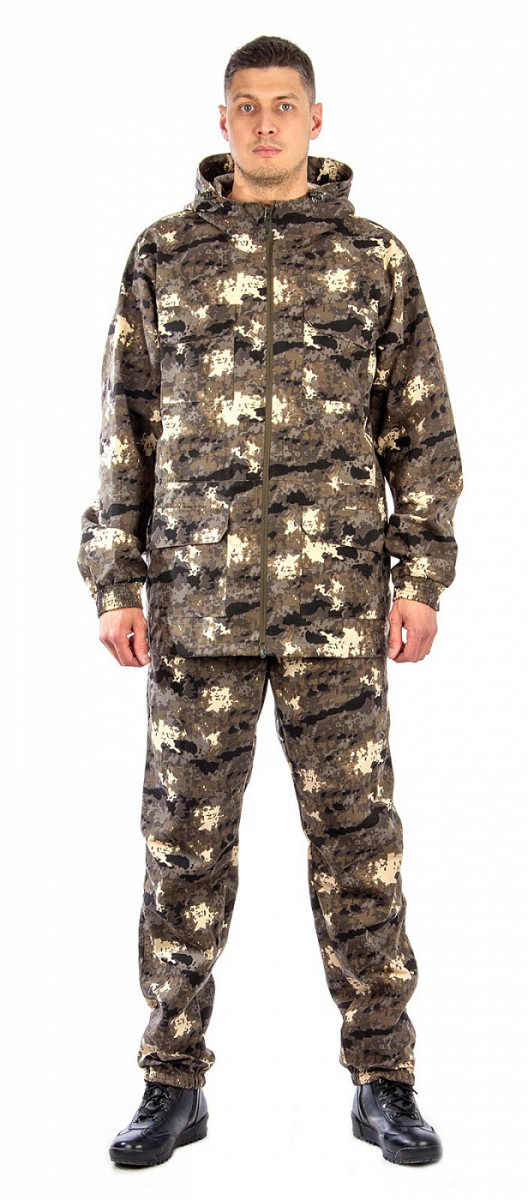 Свободного кроя костюм, не стесняющий движений, из легкой и в то же время достаточно плотной ткани, способной защитить от укусов насекомых, царапин от ветвей в лесных зарослях. Отлично подойдет для летних походов, рыбалки, тактических игр.