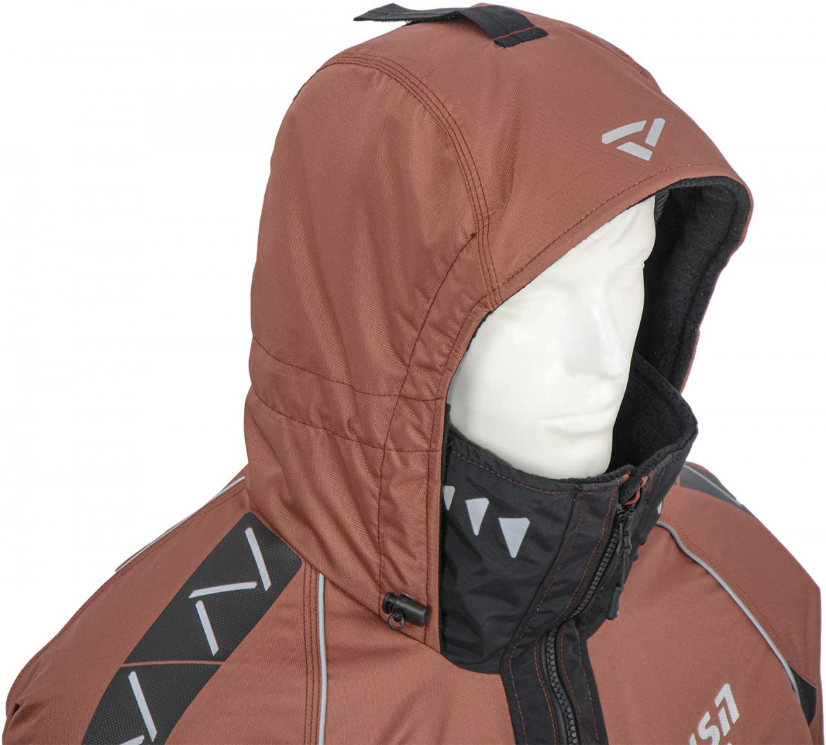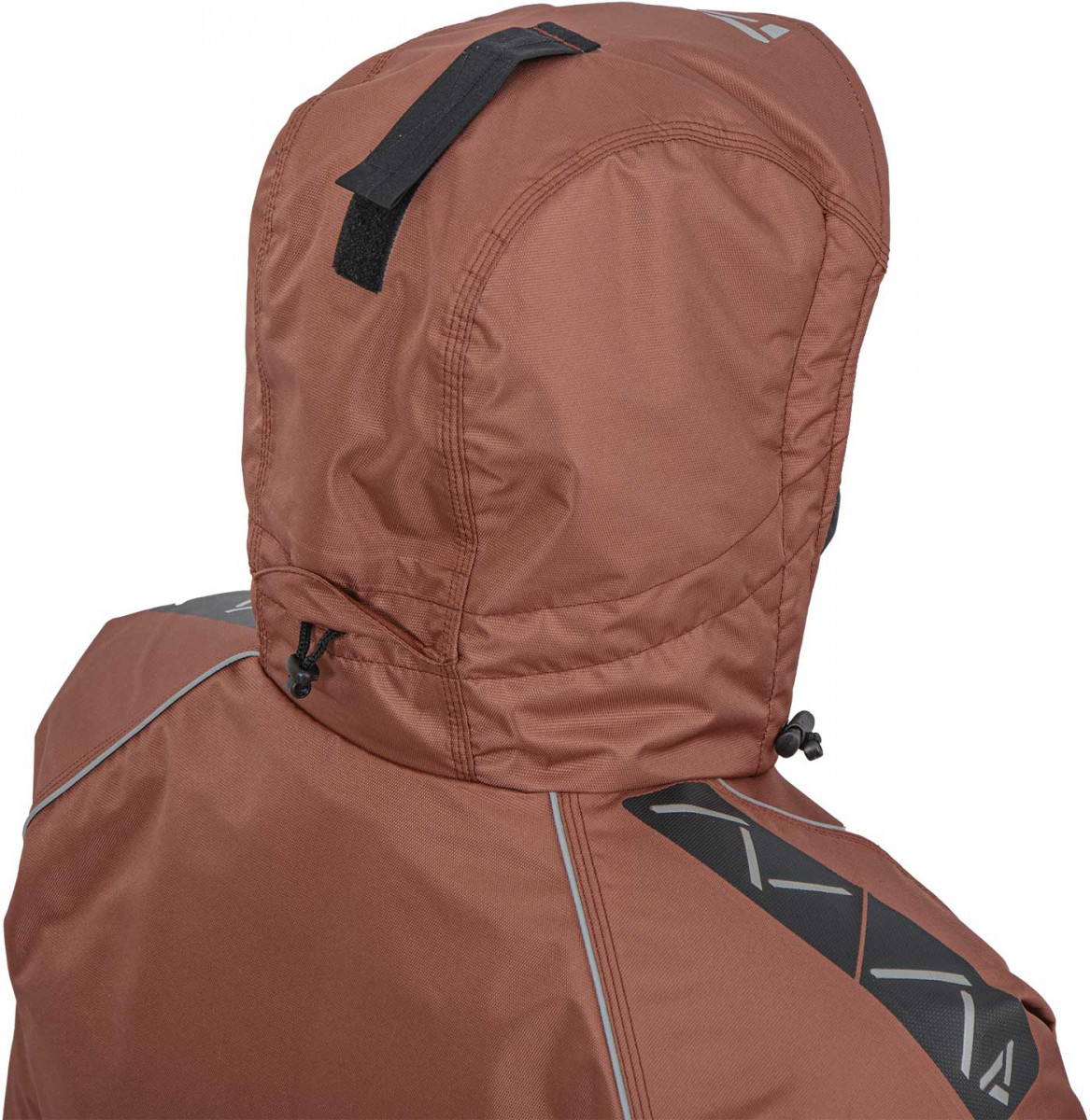 • шлемообразный капюшон куртки с жестким козырьком, защищающий лицо от снега и ветра при движении на снегоходе