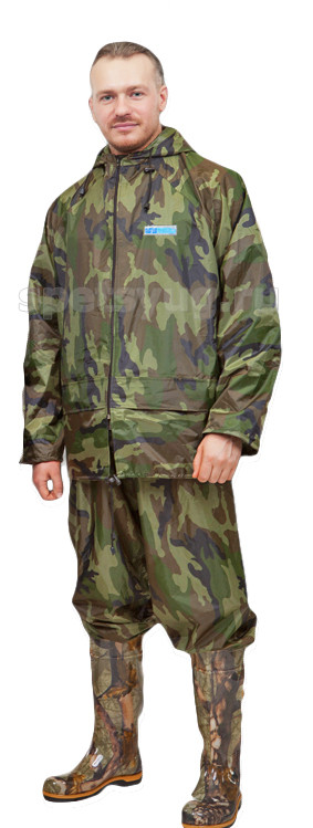 Описание: Новая, хорошо продуманная модель костюма. Удобная конструкция: костюм состоит из куртки и брюк. Куртка с застежкой на молнии, клапаном против ветра, капюшоном, двумя карманами с клапанами, манжетами на рукавах. Брюки с манжетами. Ткань: костюм изготовлен из прочной плащевой ткани с ПВХ покрытием. Вес ткани - 225гр./кв.м. Водоупорность ткани не менее 5000 мм водяного столба. Ткань экологична и соответствует европейскому стандарту по содержанию вредных веществ EN 71 PART3. Проклеенные швы: все швы костюма загерметизированы специальной лентой. Костюм выпускается в зеленом камуфлированном цвете. Изготовлен в полном соответствии с техническим регламентом таможенного союза ТР ТС 019/2011 "О безопасности средств индивидуальной защиты".