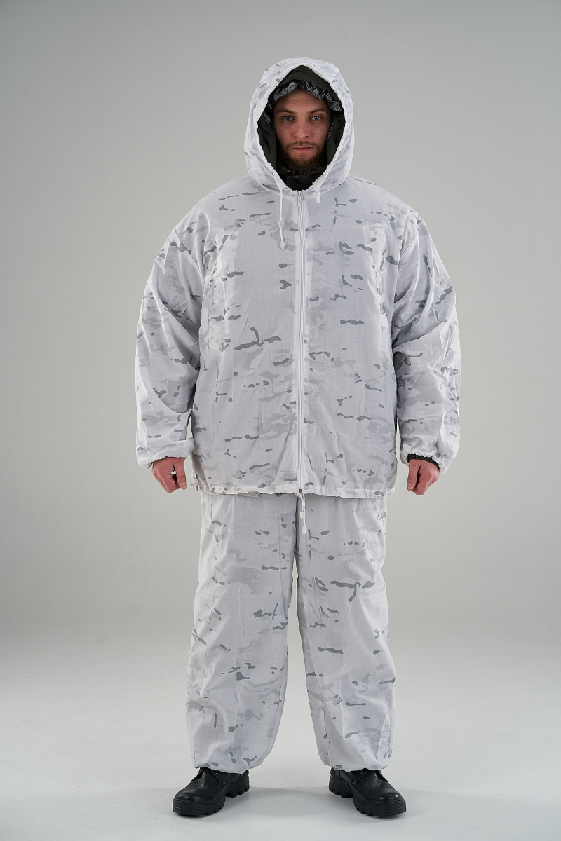 КУРТКА НА МОЛНИИ, ВТАЧНОЙ КАПЮШОН С УТЯЖКОЙ, ПО НИЗУ КУРТКИ УТЯЖКА. НИЗ РУКАВОВ И БРЮК НА РЕЗИНКЕ. ПОЯС БРЮК НА РЕЗИНКЕ. НА БРЮКАХ ДВА НАКЛАДНЫХ КАРМАНА. НА КУРТКЕ ДВА ПРОРЕЗНЫХ СКВОЗНЫХ ОТВЕРСТИЯ ДЛЯ ДОСТУПА К КАРМАНАМ ОСНОВНОЙ ЗИМНЕЙ КУРТКИ.