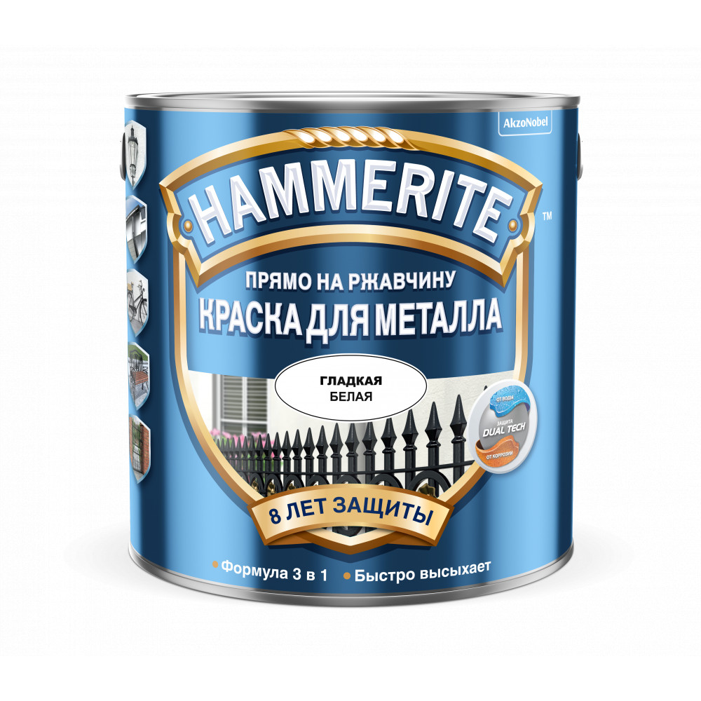 Краска Hammerite гладкая белая RAL 9016 0,75л