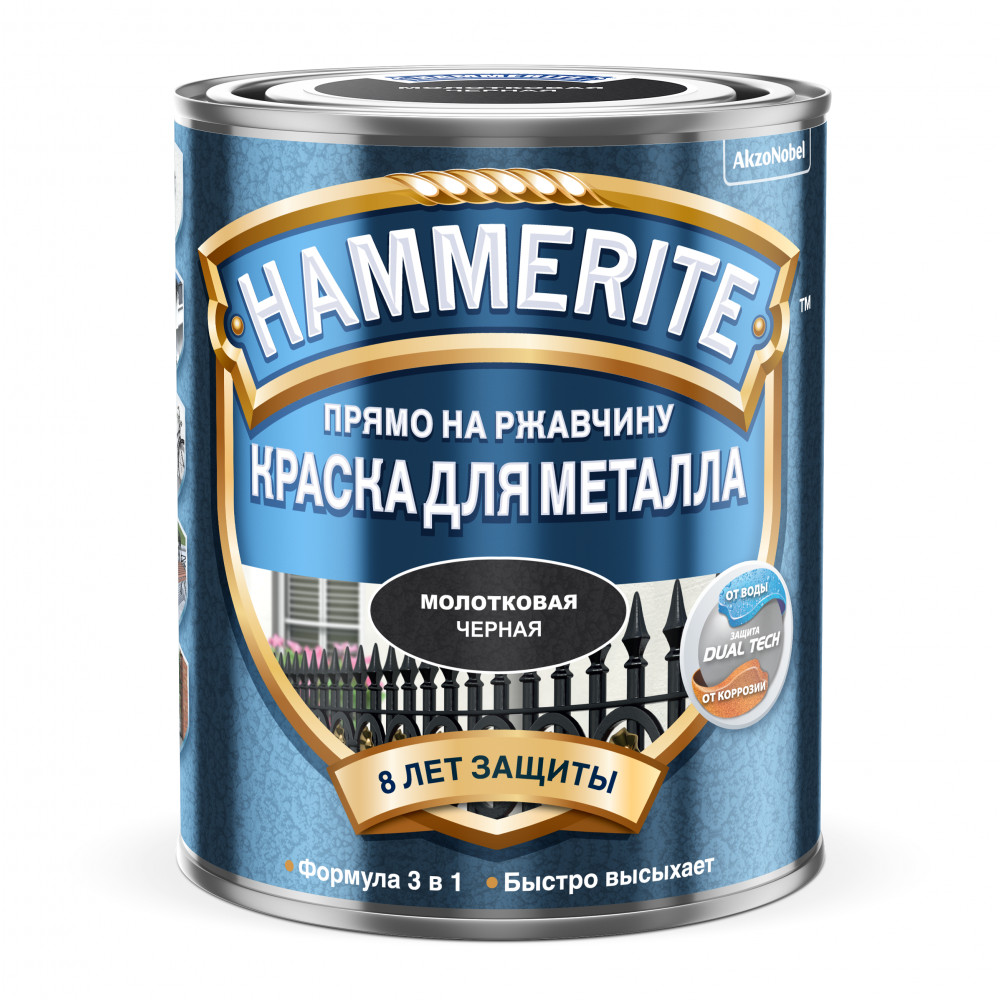 Молотковая эмаль с добавлением силикона. Прекрасно подходит для металлов, используется для дерева и различных видов пластика. С ее помощью создают износостойкое и долговечное антикоррозийное покрытие. Эмаль становится эффективной защитой от ржавчины. Молотковая эмаль Hammerite подходит как для цветных, так и черных металлов. Срок антикоррозийного эффекта составляет как минимум 8 лет.