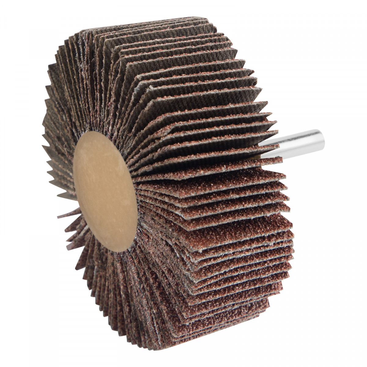 • Надежность — лепестки из прочной х/б ткани прикреплены к оправке при помощи бакелитовой смолы, поэтому круг устойчив к трению и давлению.