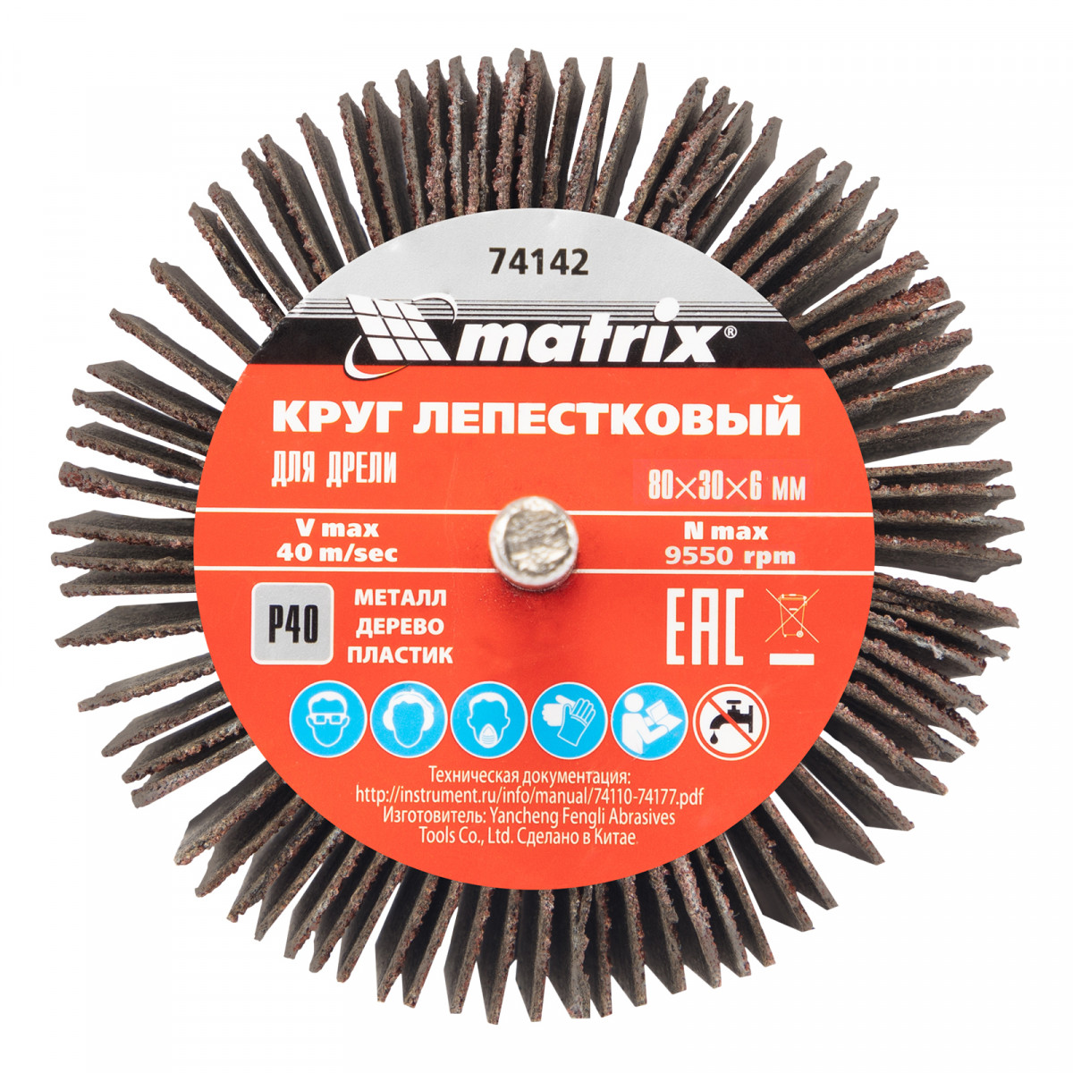 Круг лепестковый для дрели, 80 х 30 х 6 мм, P 60 Matrix