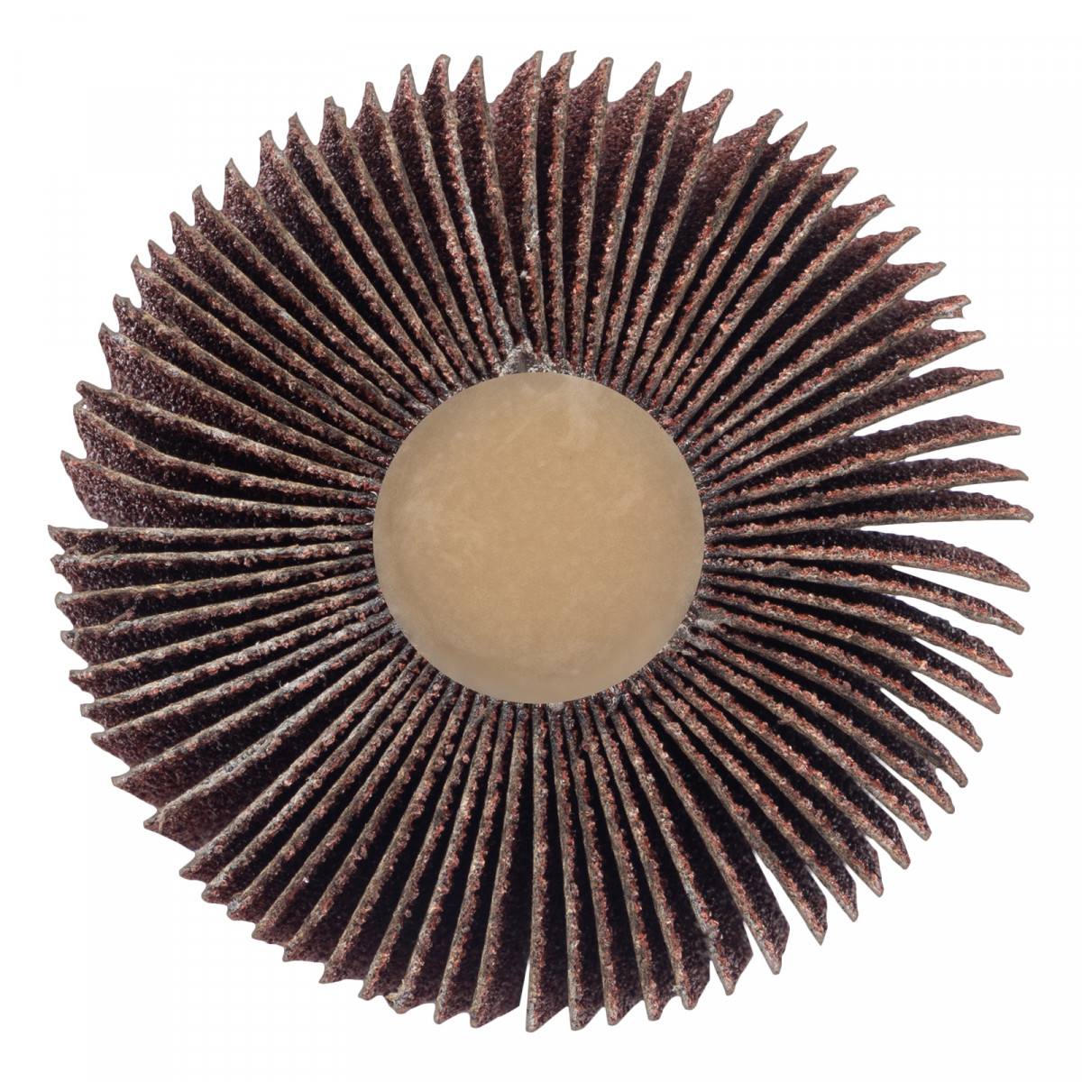 • Надежность — лепестки из прочной х/б ткани прикреплены к оправке при помощи бакелитовой смолы, поэтому круг устойчив к трению и давлению.