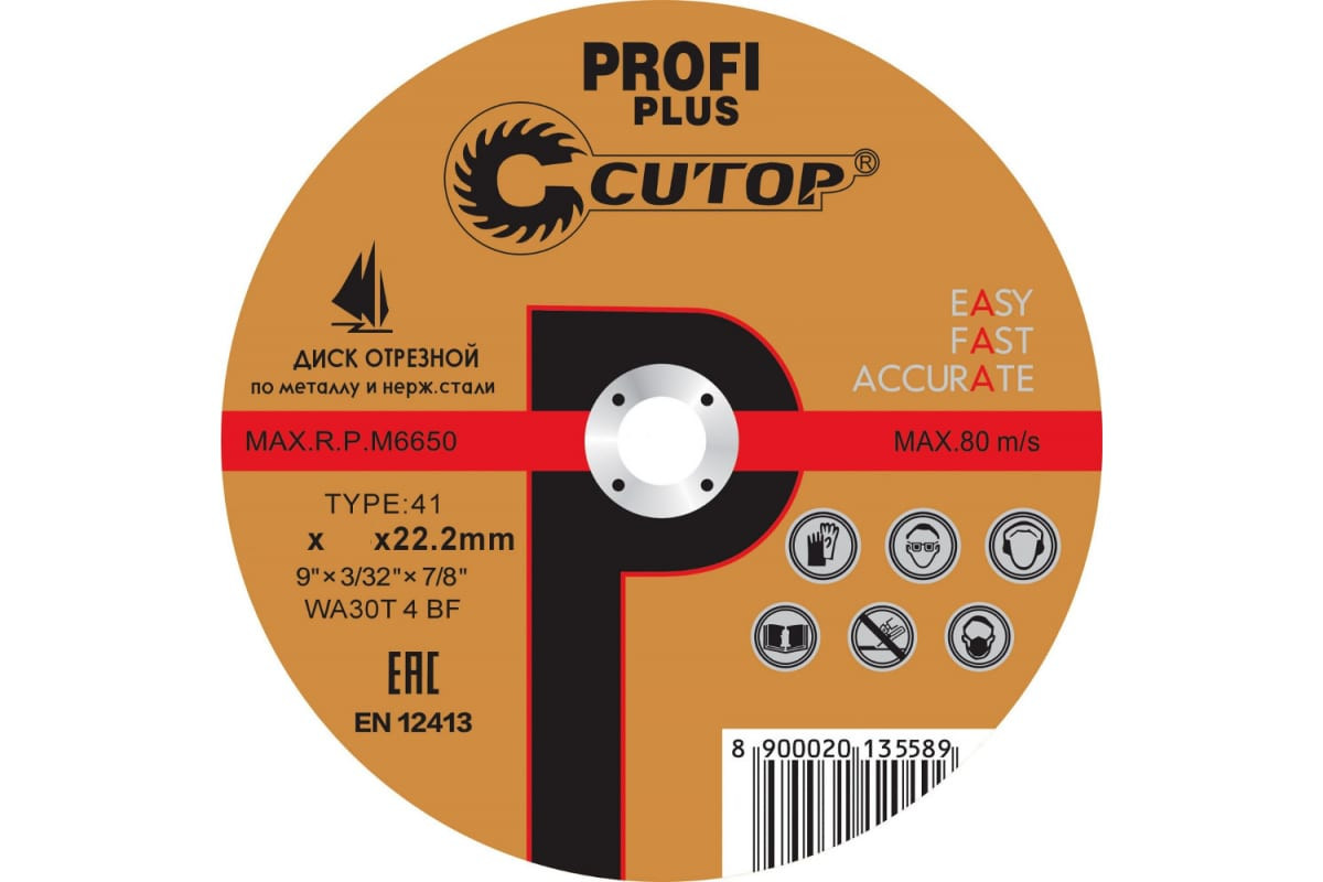 Диск отрезной Profi Plus CUTOP 40004т предназначен для резки изделий из нержавеющей стали и металла с помощью угловой шлифовальной машины. Изготовлен на основе кубического нитрида бора, что увеличивает срок службы оснастки.