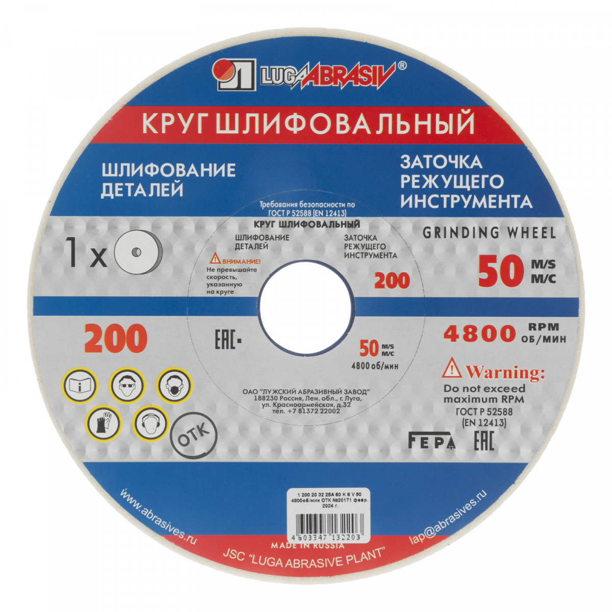Шлифовальный круг Луга 73470 размером 200 х 20 х 32 мм, с абразивом из белого электрокорунда (25А), с зернистостью F60 и твердостью K, L, применяется для шлифования поверхностей из высокотвердых материалов — углеродистых, быстрорежущих и нержавеющих сталей. Используется для заточки режущих инструментов и обработки сверл, ножей, зубьев, резцов. Устанавливается на электроточило с посадочным диаметром 32 мм.