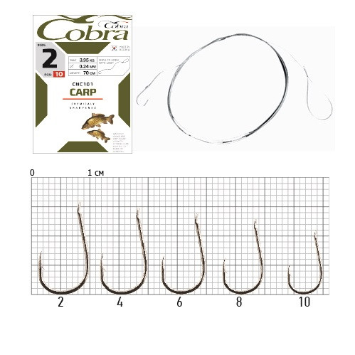 Крючки с поводком Cobra CARP 70cm, 0,16mm, разм.8, 10шт.