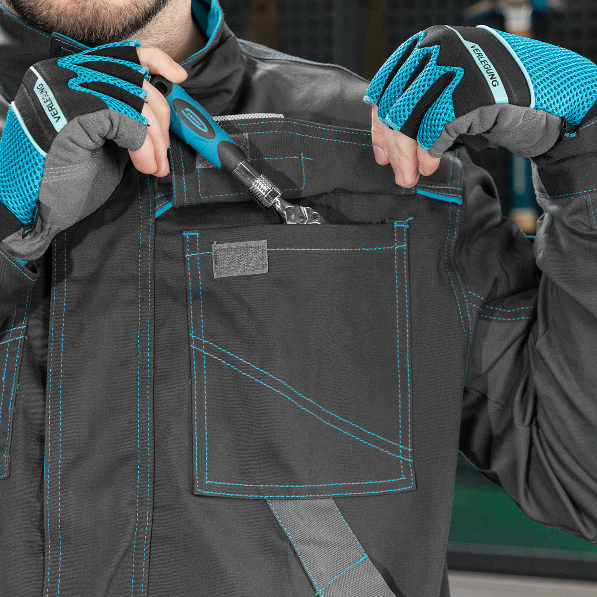 Профессиональная рабочая куртка Gross 90434 размера XL защищает пользователя от общих производственных загрязнений, нетоксичной пыли, ветра и незначительных механических воздействий. Рассчитана на рост 180-186 см и предназначена для использования в теплое время года или в отапливаемом помещении. Куртка изготовлена из ткани с 97-процентным содержанием хлопка и 3-процентным содержанием спандекса. За счет наличия хлопковых волокон в составе ткань прекрасно пропускает воздух и приятна на теле, а спандекс делает ее более эластичной, поэтому в куртке удобно работать. Одежда выполнена в практичном темно-сером цвете.