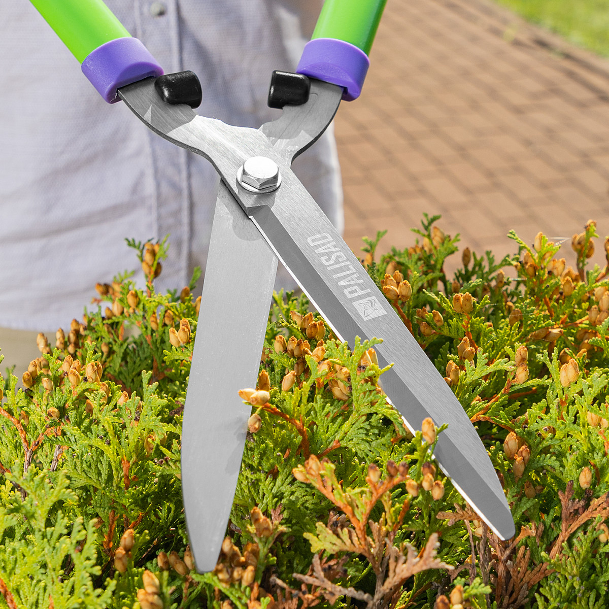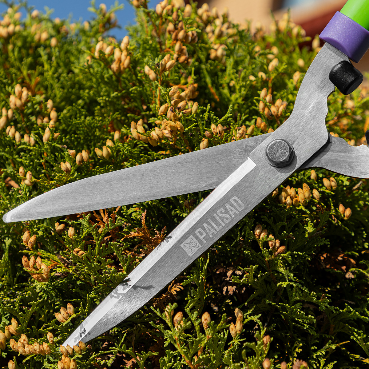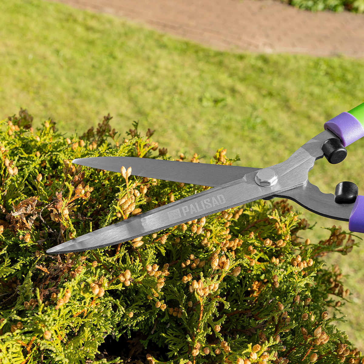 Кусторез Palisad обладает высокой долговечностью благодаря лезвиям из среднеуглеродистой стали и антикоррозионному покрытию.