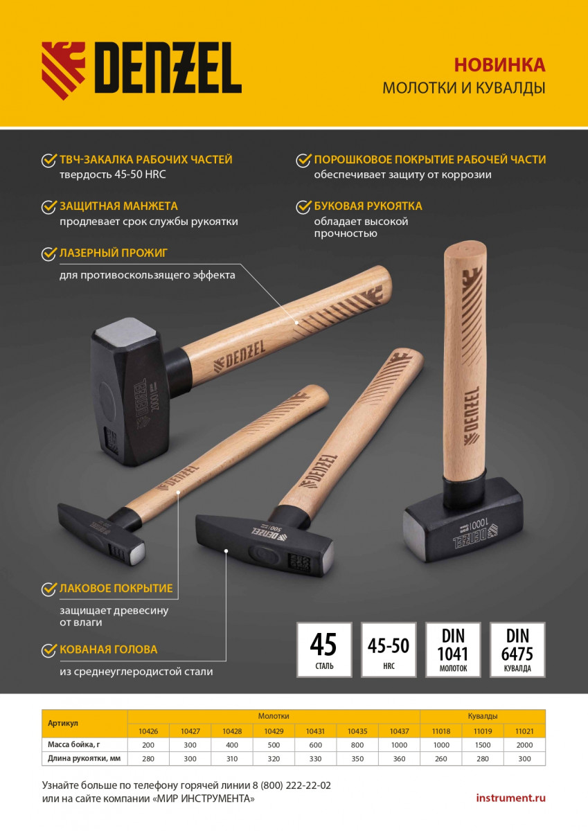 - Устойчивость к деформации — голова изготовлена из кованой стали 45, а рабочие поверхности закалены до твердости 50-55 HRC.