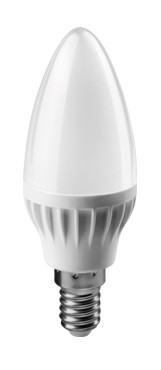 Тип колбы C37, мощность 6Вт, цоколь-Е14, цветовая температура 4000К Используется в многорожковых люстрах, а так же в настольных стилизованных светильниках.
